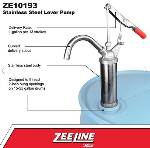 Stainless Steel Construction Dispenses approximately 1-gal per 13 strokes Fits 15-55 gallon drum PTFE seal...