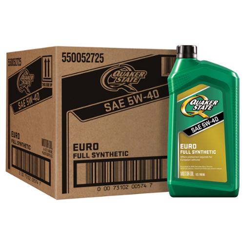 Quaker State Euro Full Synthetic-5W-40 motor oil is specially formulated to protect today’s specific European vehicles. Reduces friction to maximize horsepower. Provides excellent protection against the formation of sludge and other harmful deposits. Provides improved fuel economy (based on latest industry standard). Superior lubrication flow and pump ability in below-freezing weather. Ideal for new and old European vehicles with technologically advanced engines and modern turbocharged direct injection engines